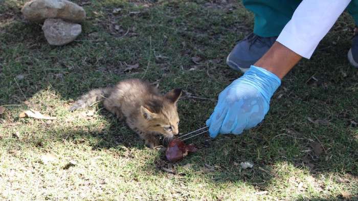 Bakanlıktan yapılan açıklamaya göre, Şırnak'ta 6 ay önce vatandaşlar tarafından yaralı ve bitkin halde bulunan saz kedisi yavrusu, Doğa Koruma ve Milli Parklar Genel Müdürlüğü (DKMP) ekiplerine teslim edildi.