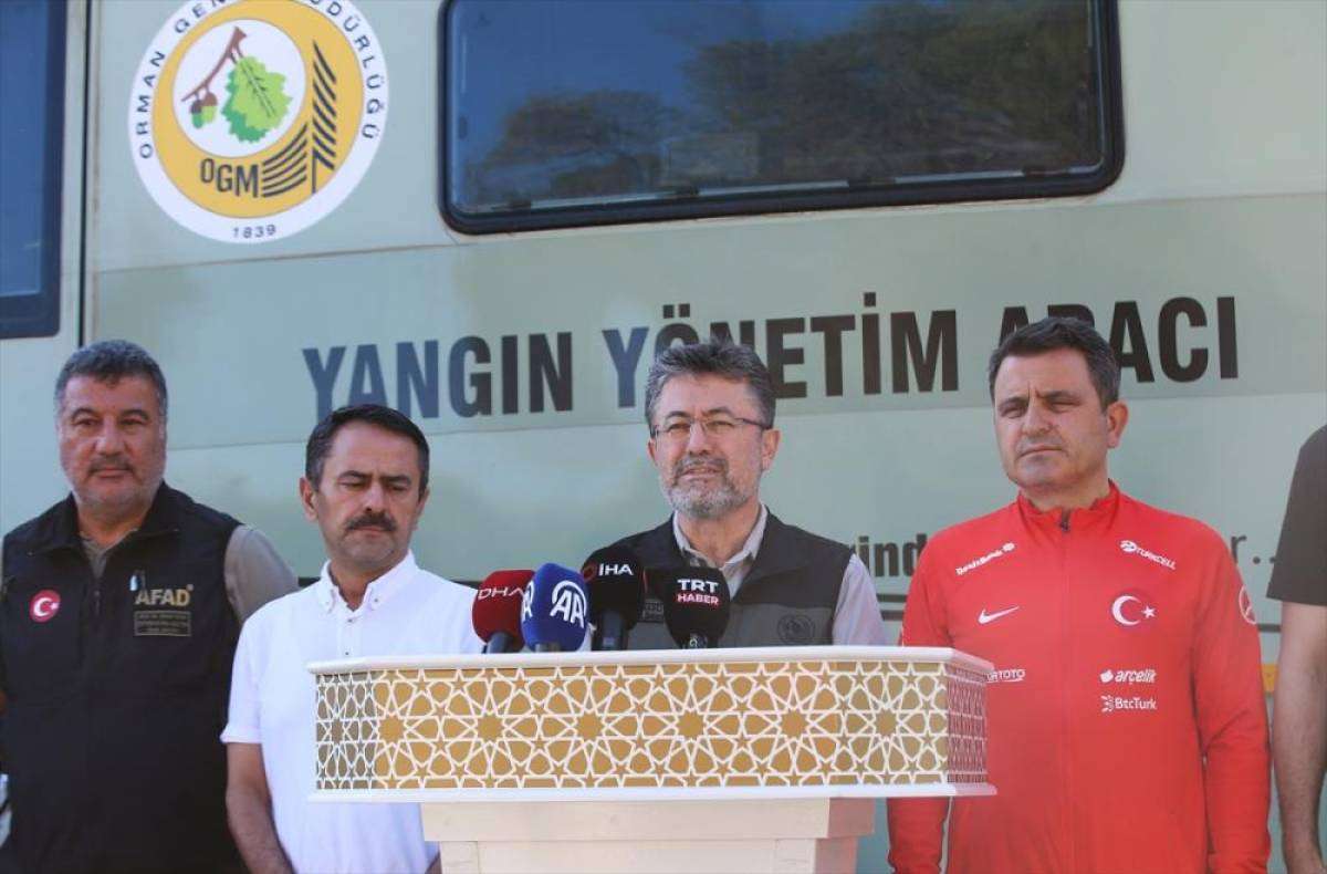 - "Sorunlu tek bir alan kaldı, şu anda arkadaşlarımız oraya yoğunlaşmış vaziyetteler. Halihazırda yangının ilerlemesi durduruldu, enerjisi büyük ölçüde azaltıldı ancak rüzgar çok yoğun olduğu için şu anda 'tamamen kontrol altında' diyemiyoruz" - "Yangından etkilenen alanın yaklaşık 575 hektar olduğunu tahmin ediyoruz. İncelemeler bittiğinde kesin rakamları söyleyeceğiz. Bunun yaklaşık 340 hektarlık alanı orman, geri kalanı orman dışı bölüm"