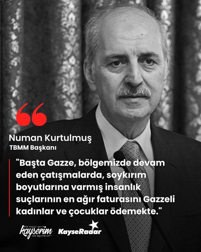 TBMM Başkanı Kurtulmuş: "Başta Gazze, bölgemizde devam eden çatışmalarda, soykırım boyutlarına varmış insanlık suçlarının en ağır faturasını Gazzeli kadınlar ve çocuklar ödemekte."