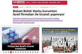 "Hal ve gerçek böyle iken aksi yöndeki haberlerin, açıklamaların, bilgilerin tamamı Filistin davasıyla ya da temel insani değerlerle alakalı olmayan ve itibar edilmemesi gereken yalanlardan ibarettir. Yurt içi ve yurt dışı kaynaklı zaman zaman ortaya atılan bu yalanların asıl amacının Türkiye'nin genel dış ticaretine ve ekonomik gelişmesine sekte vurmaya çalışmak olduğunun farkındayız. İsrail hükümeti derhal ve kalıcı ateşkes ilan edene, Gazze’ye yeterli miktarda ve kesintisiz insani yardım akışına izin verinceye ve Gazze'de yeniden imar faaliyetleri başlayıncaya kadar Türkiye söz konusu yeni tedbirleri kesin ve kararlı bir şekilde uygulayacaktır. Bununla birlikte Filistin davasının ve zulüm altındaki mazlum coğrafyaların her daim yanında olan ülkemizin bu duruşunun, maksatlı yalan haberler ve İsrail'e hizmet eden kara propagandalarla gölgelenmesine izin verilmeyecektir."