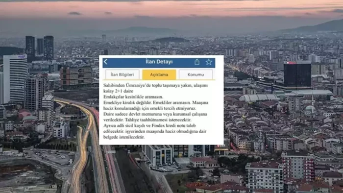 İnternette yayım yapan bir ilan sitesinde "emekliye kiralık değildir" ibaresiyle yayımlanan konut ilanına dikkati çekilen açıklamada, "Bakanlığımızca yapılan inceleme sonucunda Taşınmaz Ticareti Hakkında Yönetmeliğe aykırılık tespit edilerek ilan yayından kaldırılmış, ilgili emlak işletmesi hakkında idari para cezası uygulanmıştır." denildi.