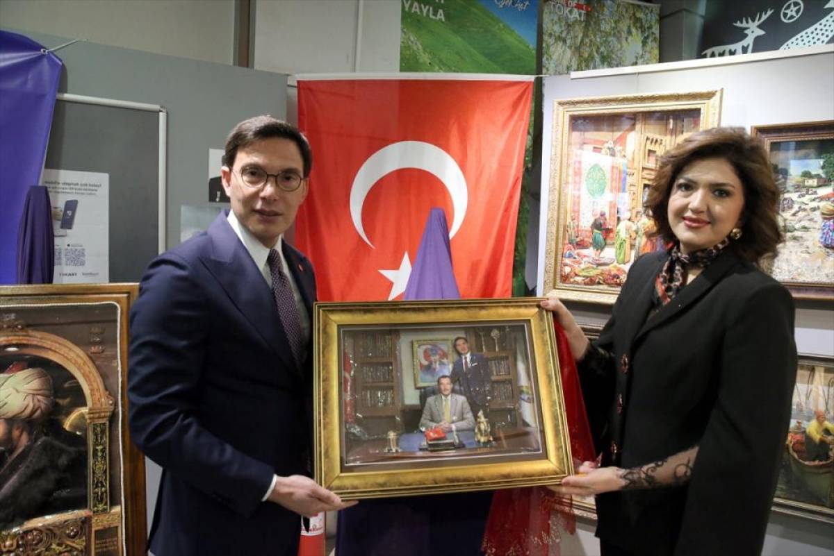 Serginin açılışına katılan Tokat Belediye Başkanı Mehmet Kemal Yazıcıoğlu, eserler hakkında bilgi aldı.