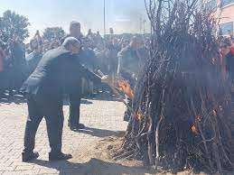 Daha sonra Rektör Tabakoğlu ve akademisyenler nevruz ateşini yaktı.