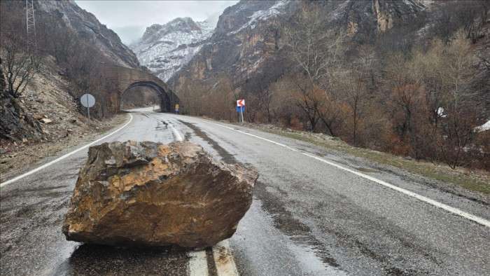 Tunceli'de yağış nedeniyle bazı yollara düşen kaya parçaları ulaşımı aksattı