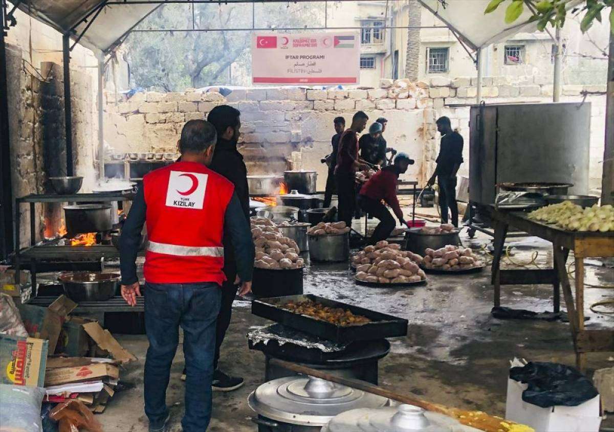 Ramazan hazırlıkları kapsamında Gazze'de gıda kolisi dağıtımlarına başlayan Türk Kızılay, 30 bin kişilik sıcak yemek dağıtımıyla halka ilk iftar desteğini de sundu.