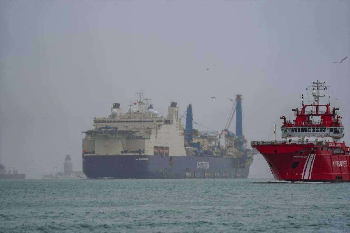 Boğaz'dan Karadeniz'e giden gemi, Türkiye'nin Karadeniz'de keşfettiği doğal gazın 2'nci faz çalışmaları kapsamında hem karaya hem de yüzer gemi platformuna boru döşeyecek.