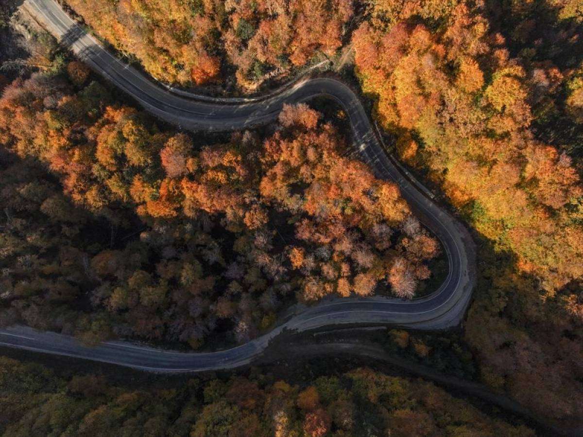 Zirveye doğru çıkan kıvrımlı yollarla bütünleşip resim tablolarını andıran manzaralar, dronla kaydedildi.
