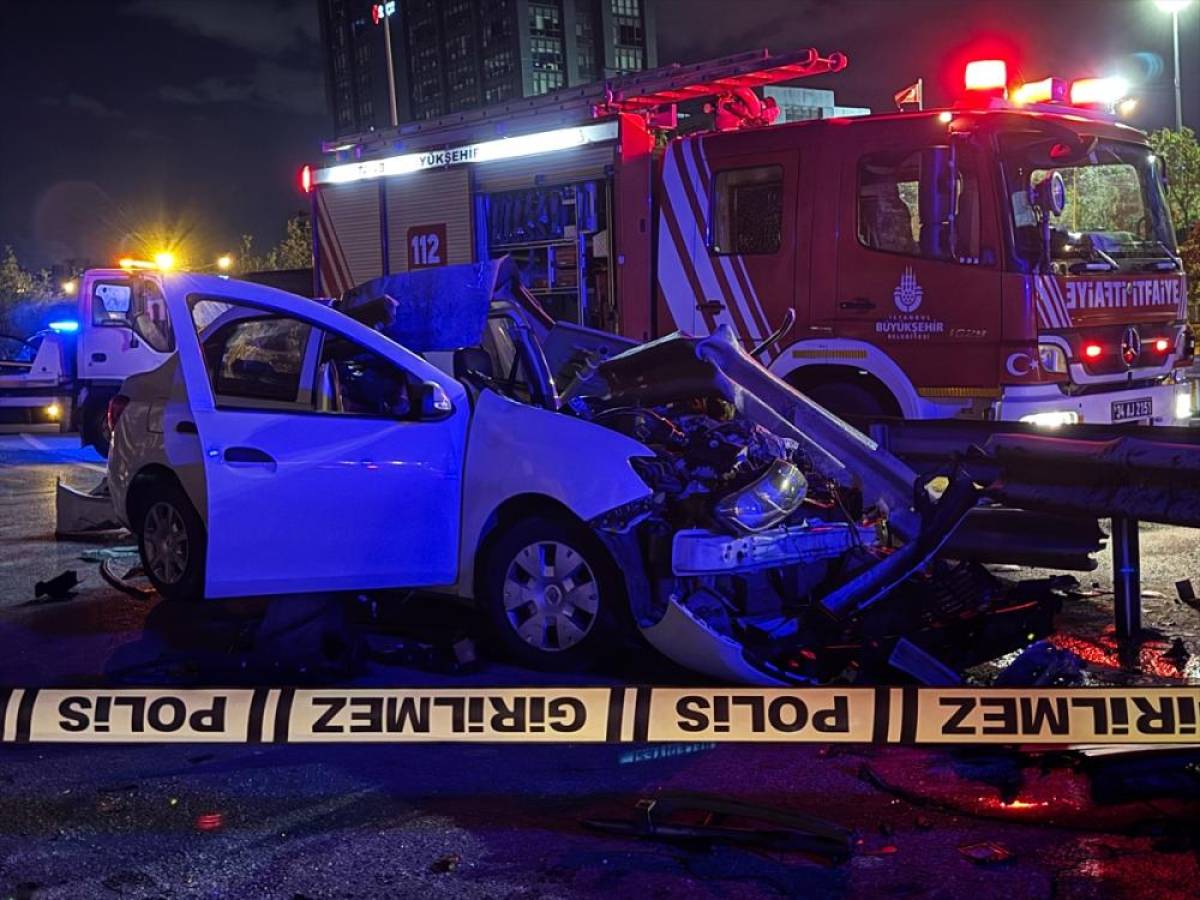 Ümraniye'de bariyerlere saplanan otomobildeki 1 kişi öldü, 1 kişi ağır yaralandı