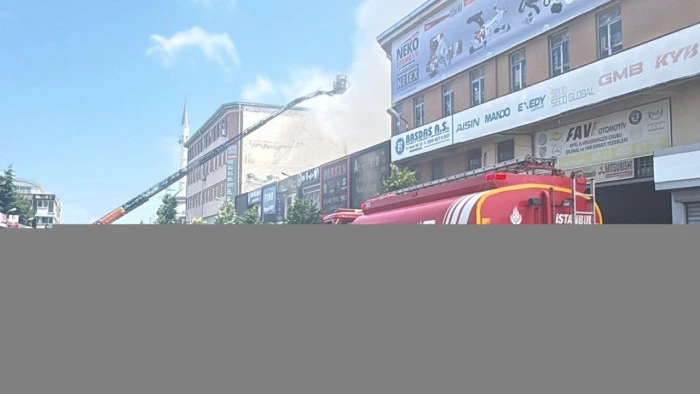Ümraniye'deki bir iş yerinde çıkan yangına müdahale ediliyor