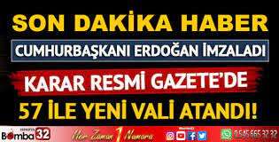 Valiler Kararnamesi ile 57 ile yeni vali atandı