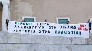 Yunanistan'da Yeni Yol Partisi parlamento binasında Filistin ve Lübnan'a destek panosu açtı